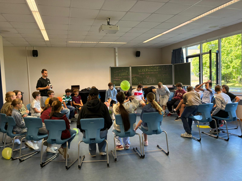 Auf dem Programm standen verschiedene Wettspiele, die Teamgeist und Geschicklichkeit förderten, wie zum Beispiel das Schichten von Strohhalmen und das sogenannte Planen-Tanzen. Musik erfüllte den Raum und sorgte für eine ausgelassene und fröhliche Atmosphäre. Ein Highlight des Nachmittags war das Kuchenbuffet, das mit traditionellen Köstlichkeiten aus der Ukraine und Armenien die Geschmackssinne der Teilnehmer verwöhnte. Die Schüler und Schülerinnen genossen den Nachmittag sichtlich und es wurde viel gelacht und gescherzt. Die Ziele dieses Spielenachmittags, die bessere Integration und Sprachförderung durch gemeinsames Erleben zu fördern sowie kulturelle Barrieren abzubauen und Freundschaften zu stärken, wurden erfolgreich umgesetzt. Alle Beteiligten freuen sich sicherlich auf eine nächste Gelegenheit, solch ein bereicherndes Miteinander fortzuführen.