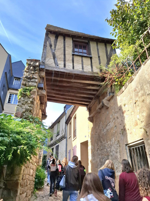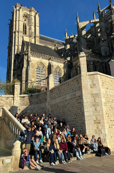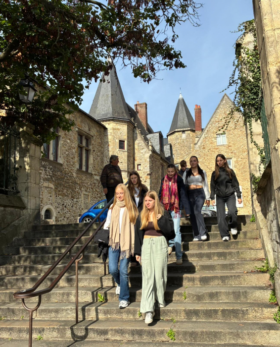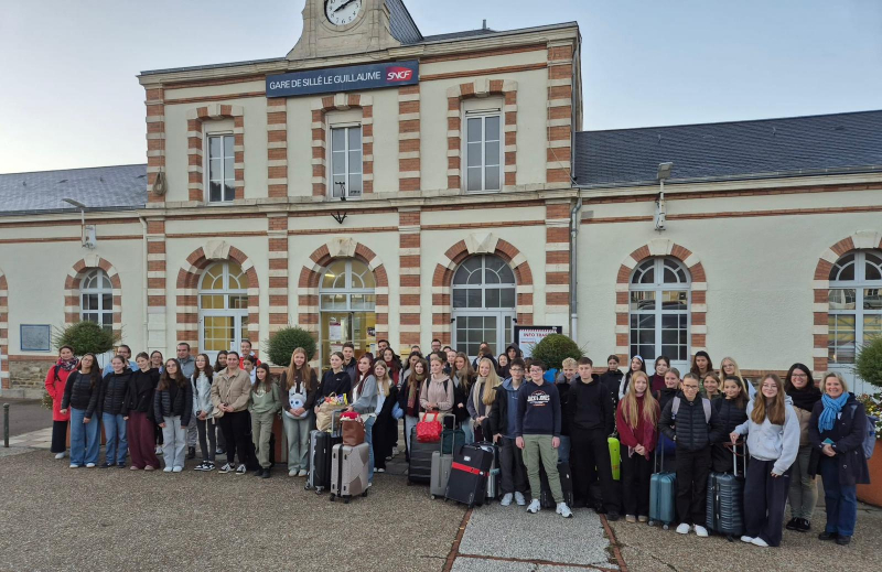 Vom 29. September bis 6. Oktober 2025 nahmen Französischschülerinnen und -schüler unseres Gymnasiums an einem Austausch mit dem französischen Collège Saint Coeur de Marie in Sillé-le-Guillaume (südwestlich von Paris) teil. Nach einer langen, spannenden Zugfahrt erreichten wir Montagabend unsere Austauschpartnerinnen und Austauschpartner, die uns am Bahnhof von Le Mans begrüßten.